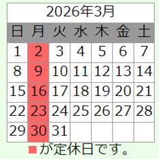 | 営業時間 | 営業時間 9:30~18:00 月曜定休日 ℡ 04-7122-2832 |